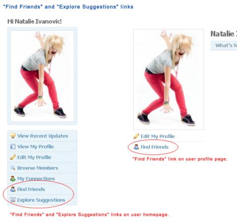 - "Find Friends" page lists more friend recommendations for the user than the "People you may know" widget. This page also allows users to search for friends on the site.